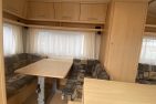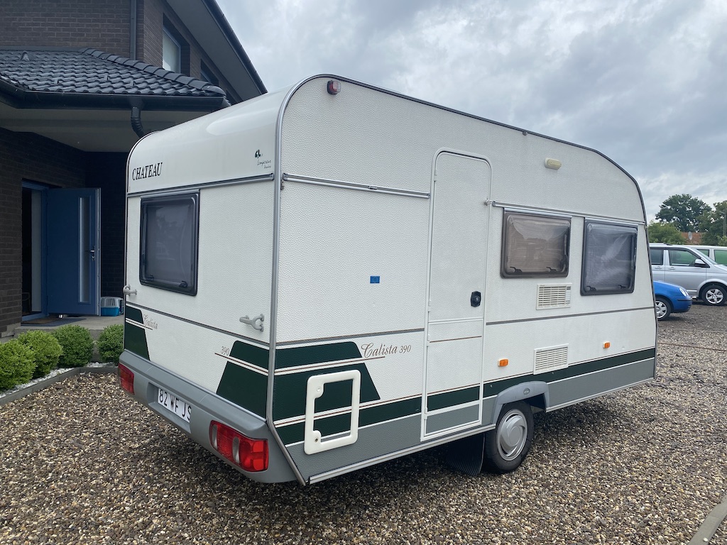 Rulota second-hand Chateau Calista 390 an de fabricatie 2000, ce are in dotare o bucatarie cu chiuveta inox si robinet, aragaz, frigider functional pe gaz 12V/220V, sistem de incalzire Trumavent, trape de aerisire, baie cu wc fix ecologic, cu golire exterioara, cadita de dus. Rulota este compartimentata dubla: in fata se afla doua banchete cu o masa din care se face un pat de 2 m x 1.60 m, iar in spate se afla o masa cu doua bancute, din care se face un pat pentru o persoane. Toate geamurile se deschid si au plase antitantari, jaluzele atermice, perdele si draperii. Rulota are un cort inchis de 12 m2, carlig antibalance, butelie gpl… Rulota se afla intr-o stare impecabila, fara mirosuri si infiltratii!!!