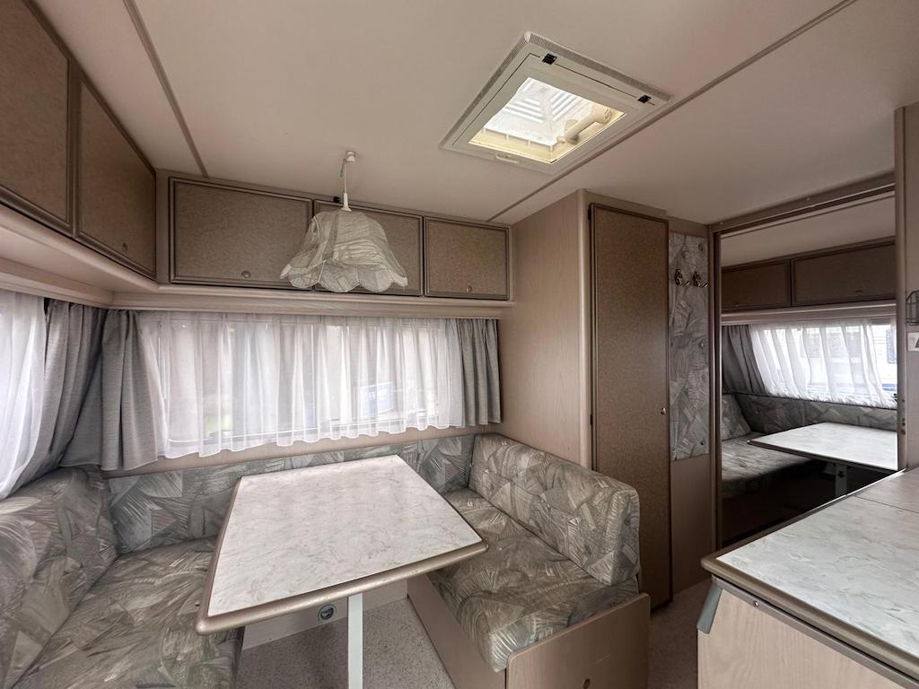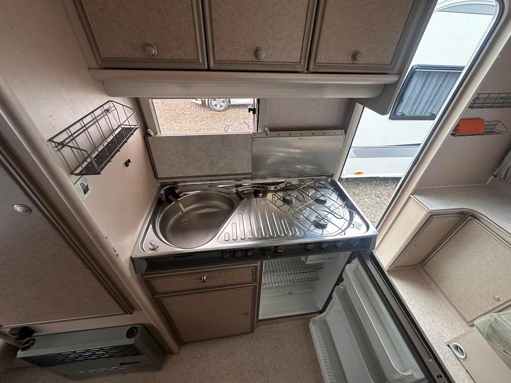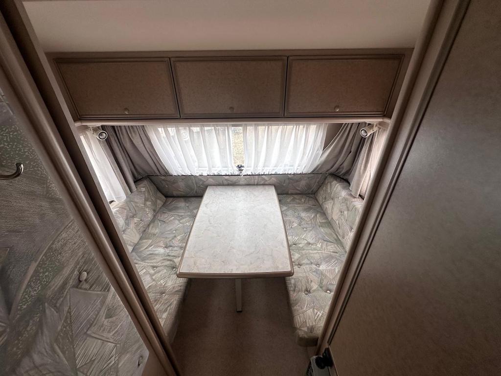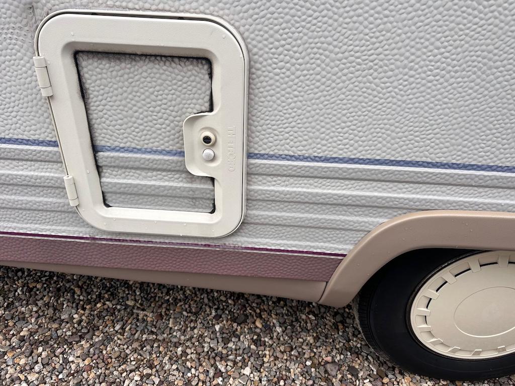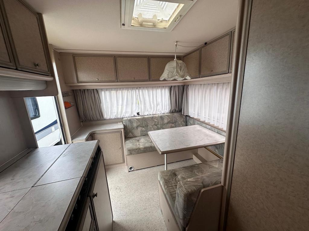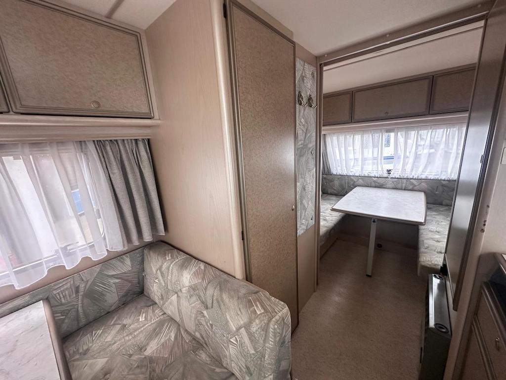 Rulota second-hand Dethleffs New-Line , an de fabricatie 1993, ce are in dotare o bucatarie cu chiuveta inox si robinet, aragaz, frigider functional pe gaz 12V/220V, sistem de incalzire Trumatic, trape de aerisire, baie cu wc fix ecologic, cu golire exterioara. Rulota este compartimentat dublu: in fata se afla doua banchete cu o masa, din care se face un pat de 1.50m x 2 m, iar in spate dintr-o masa si doua banchete se face un pat pt. o persoana. Toate geamurile se deschid si au plase antitantari, jaluzele atermice, perdele si draperii. Rulota are un cort inchis, carlig antibalance… Rulota se afla intr-o stare buna, fara mirosuri si infiltratii!!!