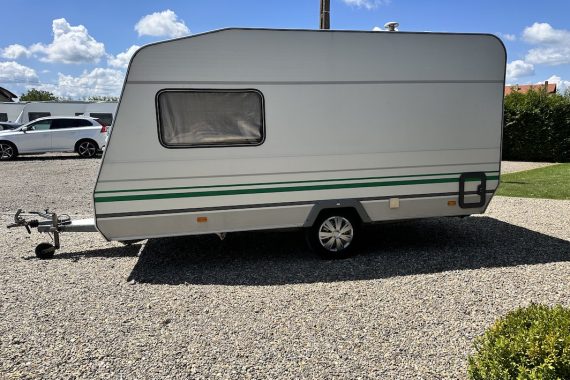 Rulota second-hand Eifelland Holiday 395H, an de fabricatie 1996, ce are in dotare o bucatarie cu chiuveta inox si robinet, frigider functional pe gaz 12V/220V, sistem de incalzire Trumatic pe gaz, trape de aerisire, baie cu wc fix ecologic, cu golire exterioara, cadita de dus. Rulota este compartimentata simpla, in fata are un un coltar cu o masa, din care se face un pat mare . Toate geamurile se deschid si au plase antitantari, jaluzele atermice, perdele si draperii. Rulota are un cort inchis, carlig antibalance, butelie gpl… Rulota se afla intr-o stare buna, fara mirosuri si infiltratii!!!