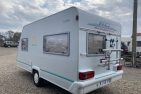 Rulota second-hand Eifelland Holiday Special 415 TMF, an de fabricatie 2004, ce are in dotare o bucatarie cu chiuveta inox si robinet, frigider functional pe gaz 12V/220V, sistem de incalzire Trumavent pe gaz, plus sistem de incalzire Truma Therme, trape de aerisire, baie cu wc fix ecologic, cu golire exterioara, cadita de dus. Rulota are in fata si in spate cate doua banchete cu o masa din care se face un pat pentru cate 2 persoane. Toate geamurile se deschid si au plase antitantari, jaluzele atermice, perdele si draperii. Rulota are un cort inchis, carlig antibalance, butelie gpl… Rulota se afla intr-o stare impecabila, fara mirosuri si infiltratii!!!