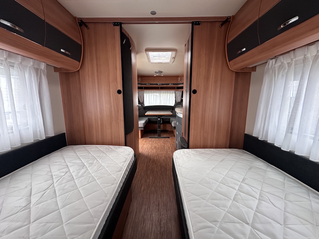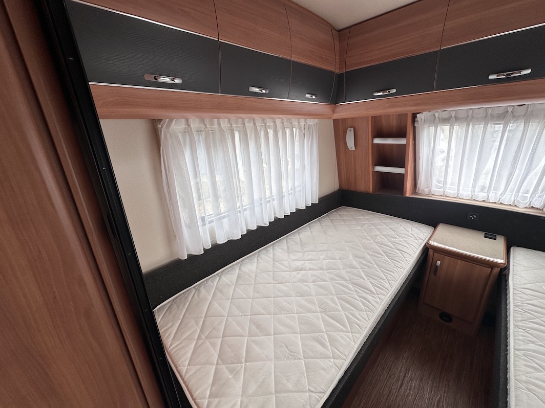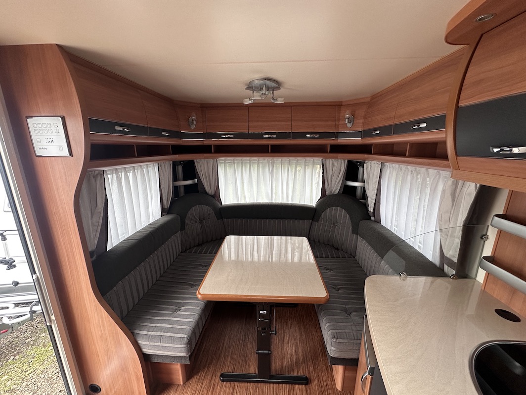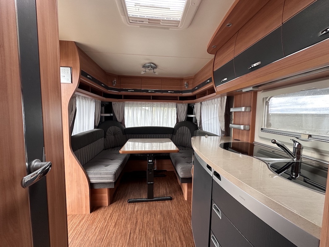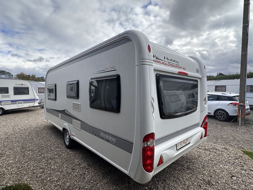 Rulota second hand: Hobby De Luxe 540 UL, an de fabricatie 2011, ce are in dotare o bucatarie cu chiuveta inox si robinet, aragaz, frigider functional pe gaz 12V/220V, sistem de incalzire Trumatic, trape de aerisire, baie cu wc fix ecologic, cu golire exterioara, cadita de dus. Rulota este compartimentat dublu: in fata se doua paturi de cate o persoana, cu o noptiera, iar in spate se afla un coltar mare, din care se face un pat de 2 m x 1.80 m . Toate geamurile se deschid si au plase antitantari, jaluzele atermice, perdele si draperii. Rulota are un cort inchis, carlig antibalance, butelie gpl…Rulota se afla intr-o stare impecabila, fara mirosuri si infiltratii!!!