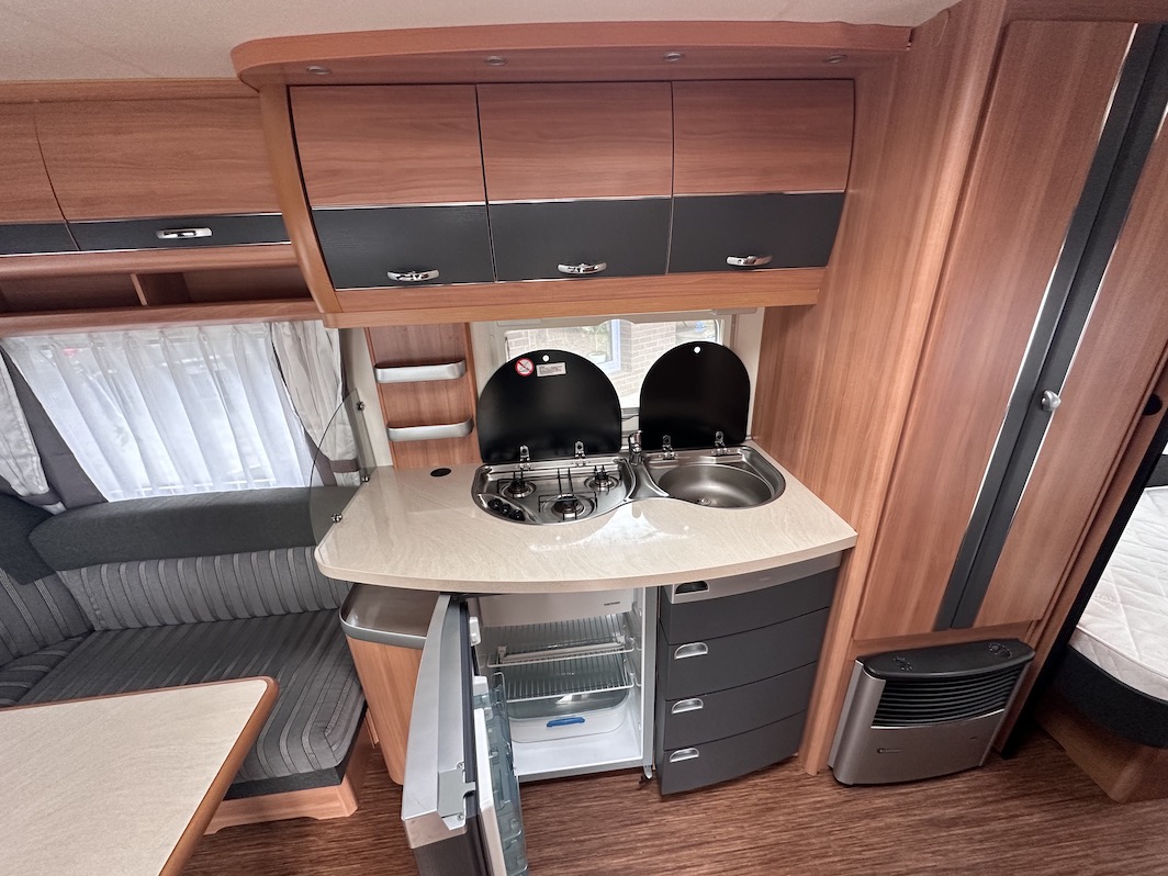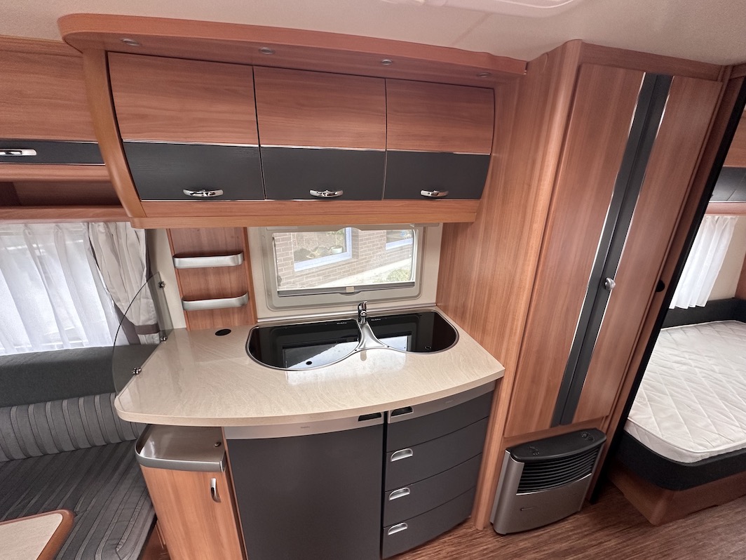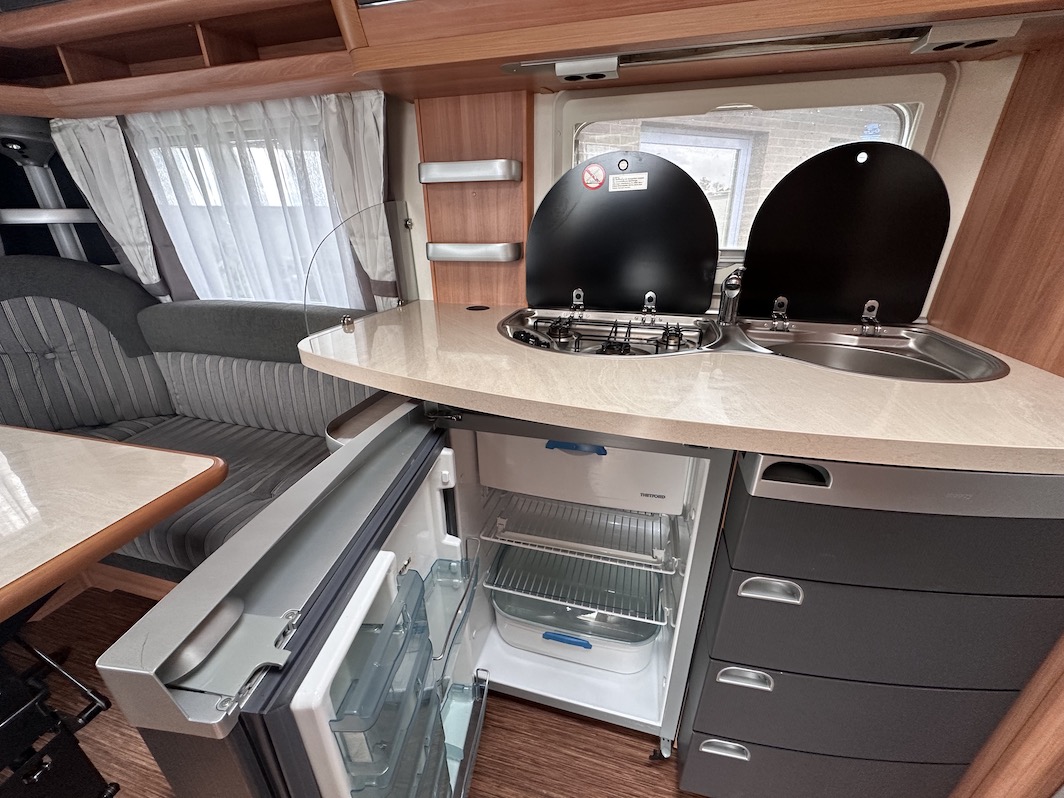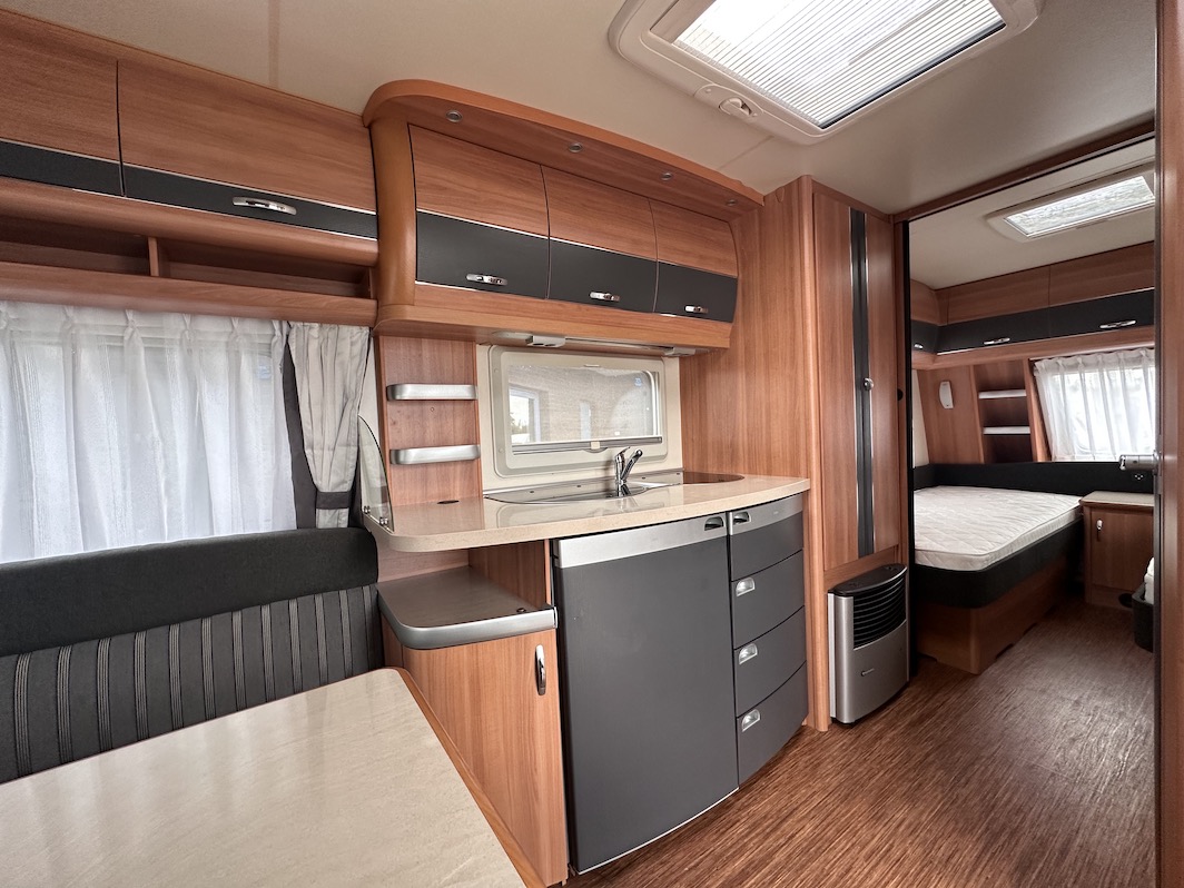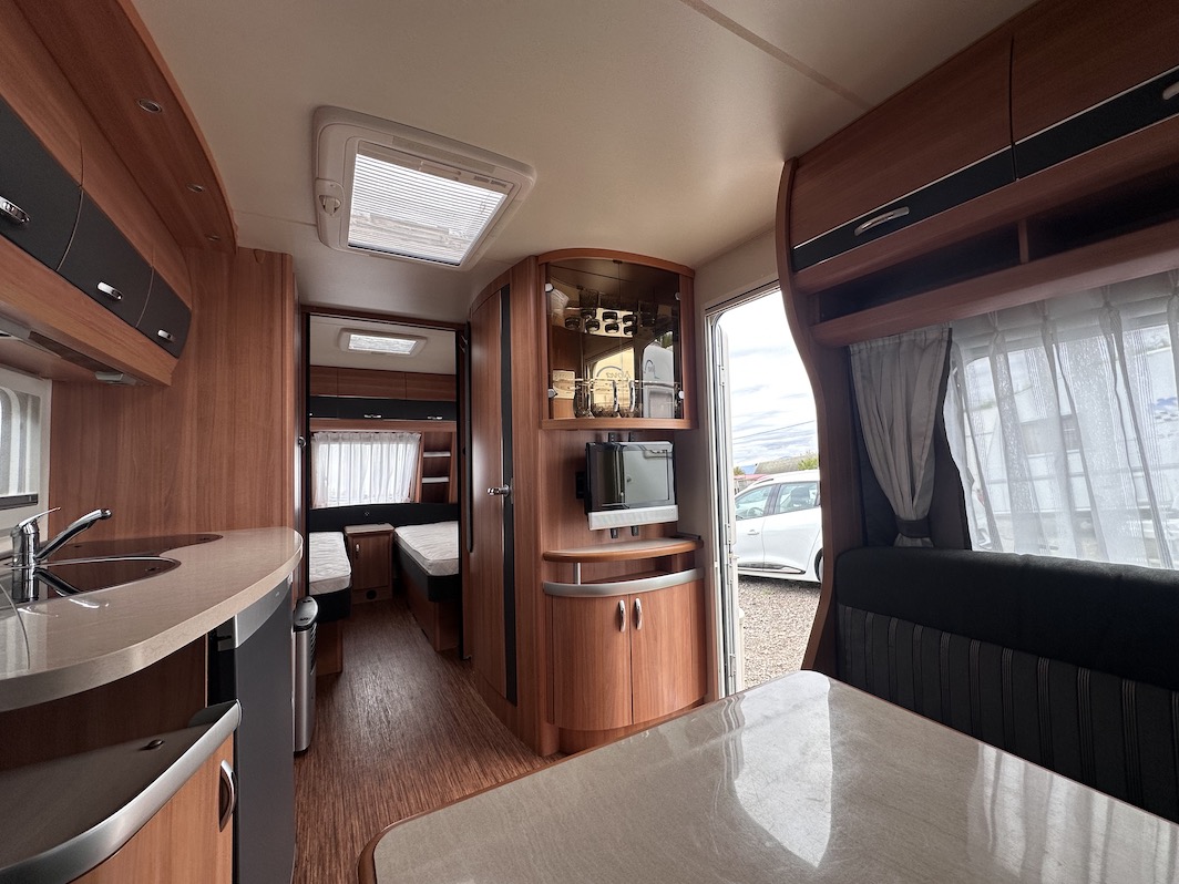 Rulota second hand: Hobby De Luxe 540 UL, an de fabricatie 2011, ce are in dotare o bucatarie cu chiuveta inox si robinet, aragaz, frigider functional pe gaz 12V/220V, sistem de incalzire Trumatic, trape de aerisire, baie cu wc fix ecologic, cu golire exterioara, cadita de dus. Rulota este compartimentat dublu: in fata se doua paturi de cate o persoana, cu o noptiera, iar in spate se afla un coltar mare, din care se face un pat de 2 m x 1.80 m . Toate geamurile se deschid si au plase antitantari, jaluzele atermice, perdele si draperii. Rulota are un cort inchis, carlig antibalance, butelie gpl…Rulota se afla intr-o stare impecabila, fara mirosuri si infiltratii!!!