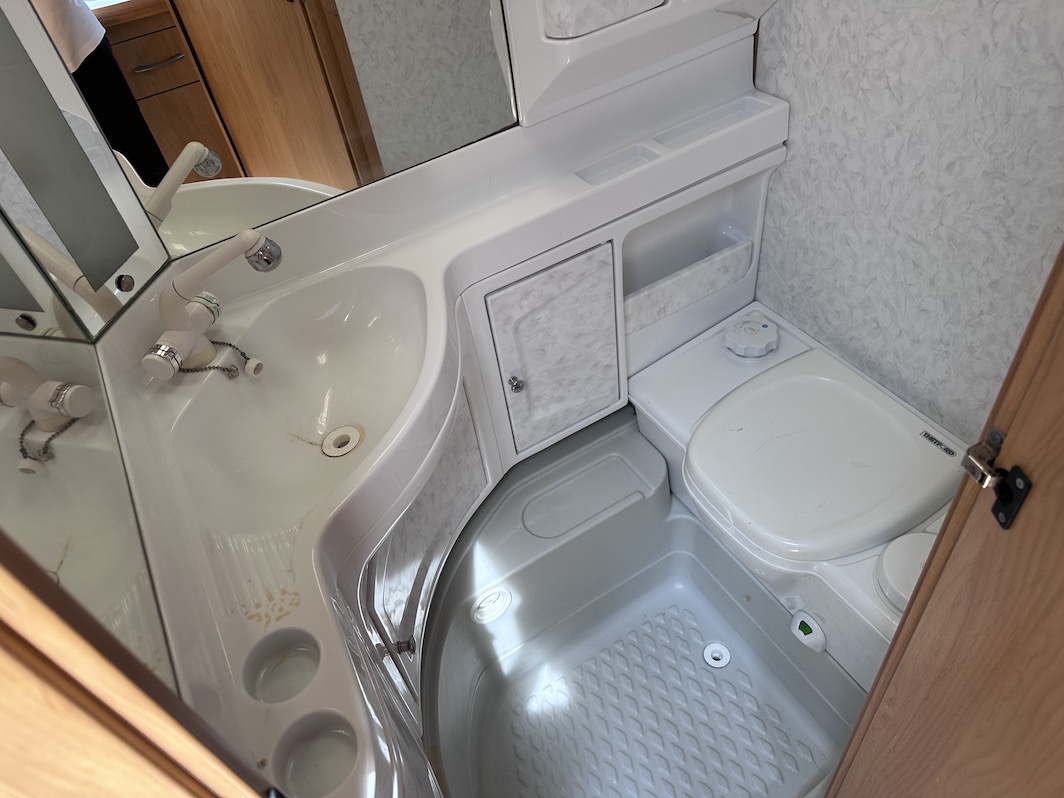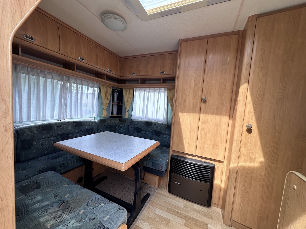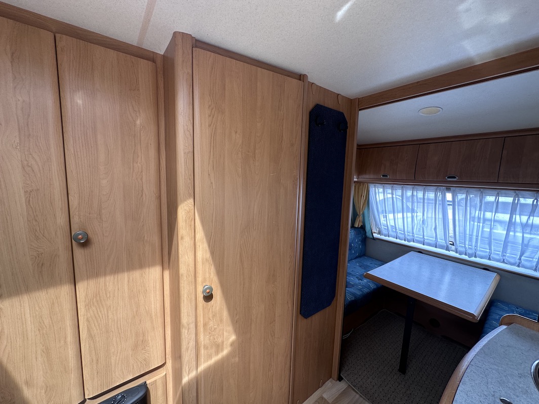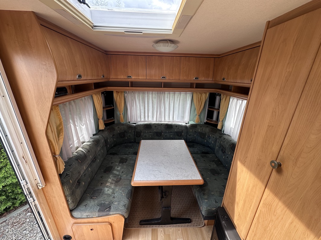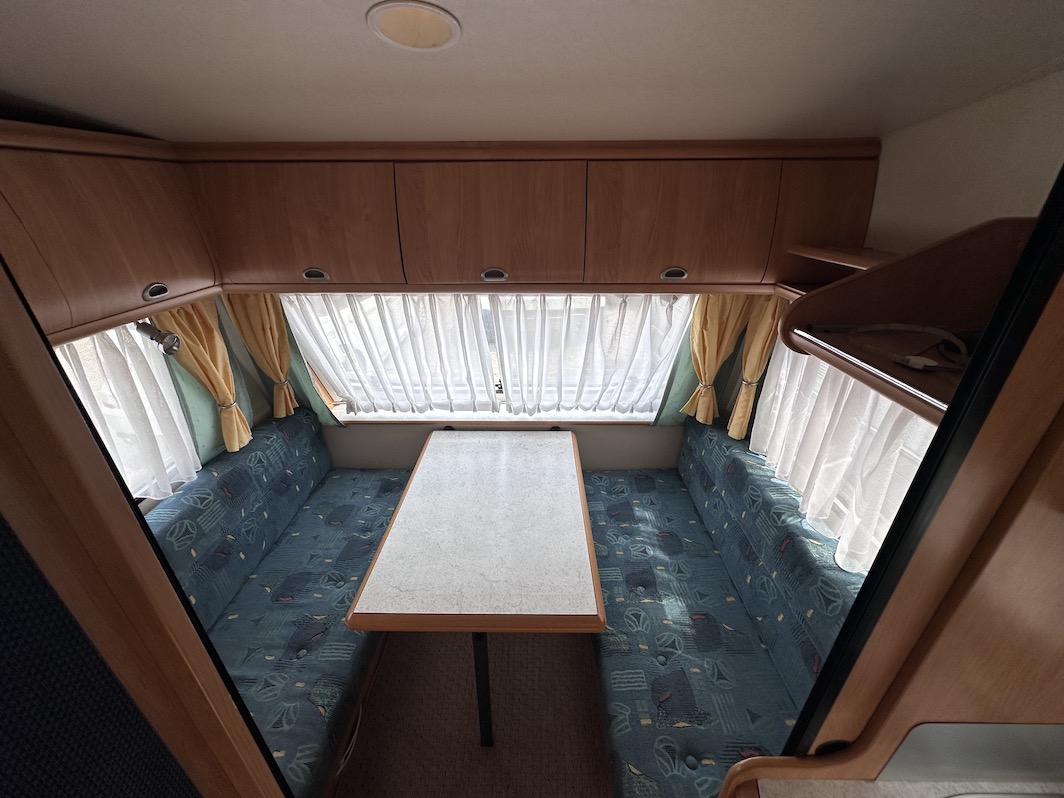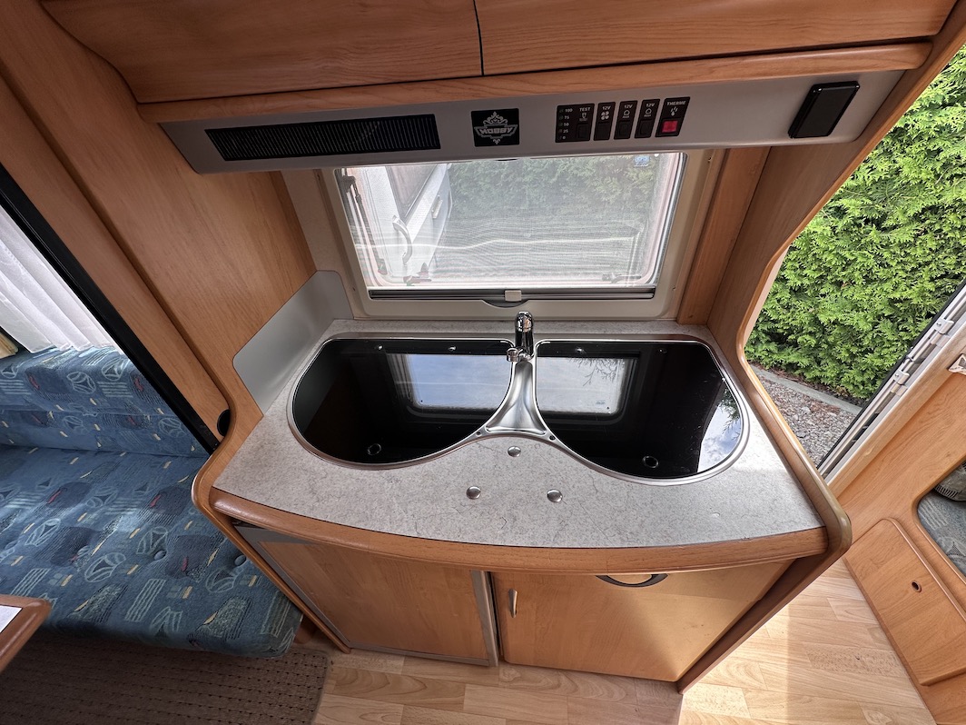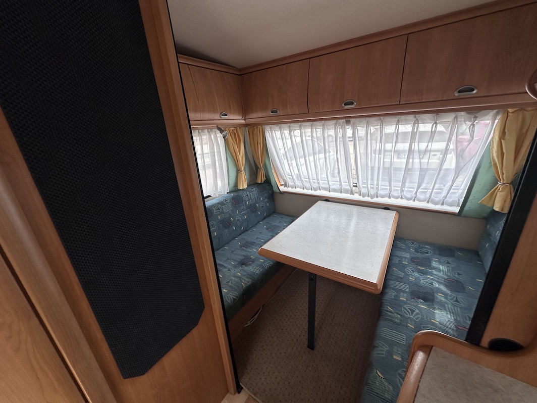 Rulota second hand: Hobby Exclusive 450 UB, an de fabricatie 2003 , cu RAR efectuat, cu carte in Romania, ce are in dotare o bucatarie cu chiuveta inox si robinet, aragaz, frigider functional pe gaz 12V/220V, sistem de incalzire Trumavent, trape de aerisire, baie cu wc fix ecologic, cu golire exterioara, cadita de dus. Rulota este compartimentat dublu: in fata se afla un coltar mare din care se face un pat de 2-3 persoane, iar in spate se afla doua banchete cu o masa, din care se face un pat de marimea 1.80 m x 1.45 m. Toate geamurile se deschid si au plase antitantari, jaluzele atermice, perdele si draperii. Rulota are un cort inchis, carlig antibalance, butelie gpl…Rulota se afla intr-o stare foarte buna, fara mirosuri si infiltratii!!!