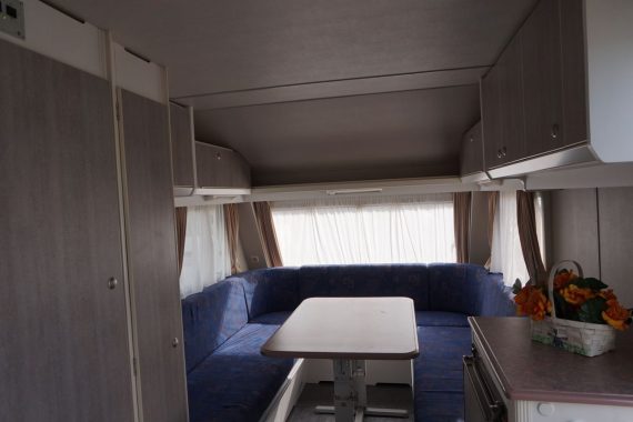 Rulota second-hand Kip Hyline, an de fabricatie 1995, ce are in dotare o bucatarie cu chiuveta inox si robinet, aragaz, frigider functional pe gaz 12V/220V, incalzire in podea, boiler apa calda Curver pe gaz, trape de aerisire, baie cu wc ecologic mobil, cadita de dus, PANOU SOLAR. Rulota are un coltar mare, din care se face un pat 2 m x 1.80 m. Toate geamurile se deschid si au plase antitantari, jaluzele atermice, perdele si draperii. Rulota are un cort inchis, carlig antibalance, suport de biciclete, butelie gpl… Rulota se afla intr-o stare impecabila, fara mirosuri si infiltratii!!!