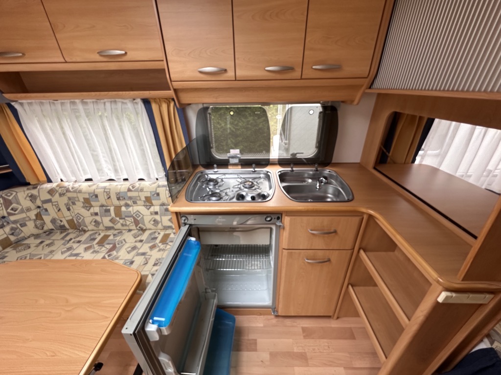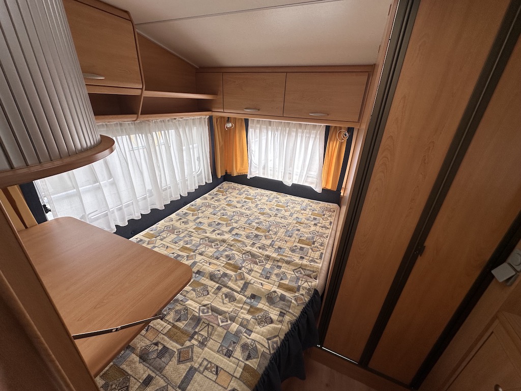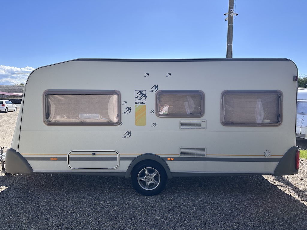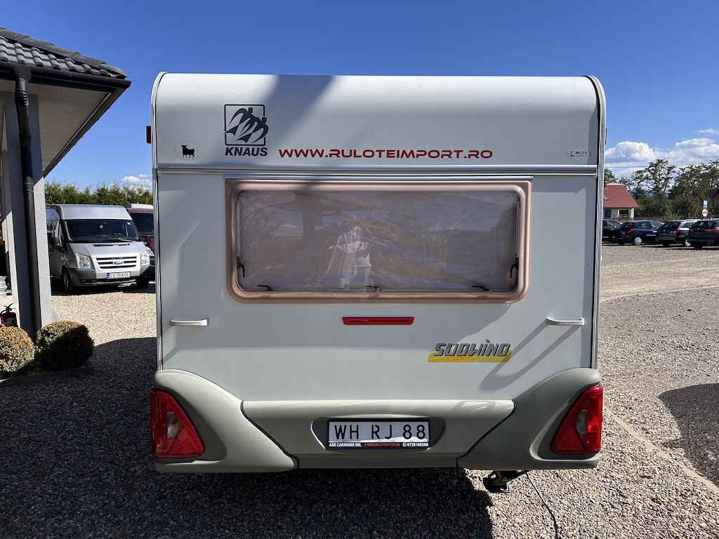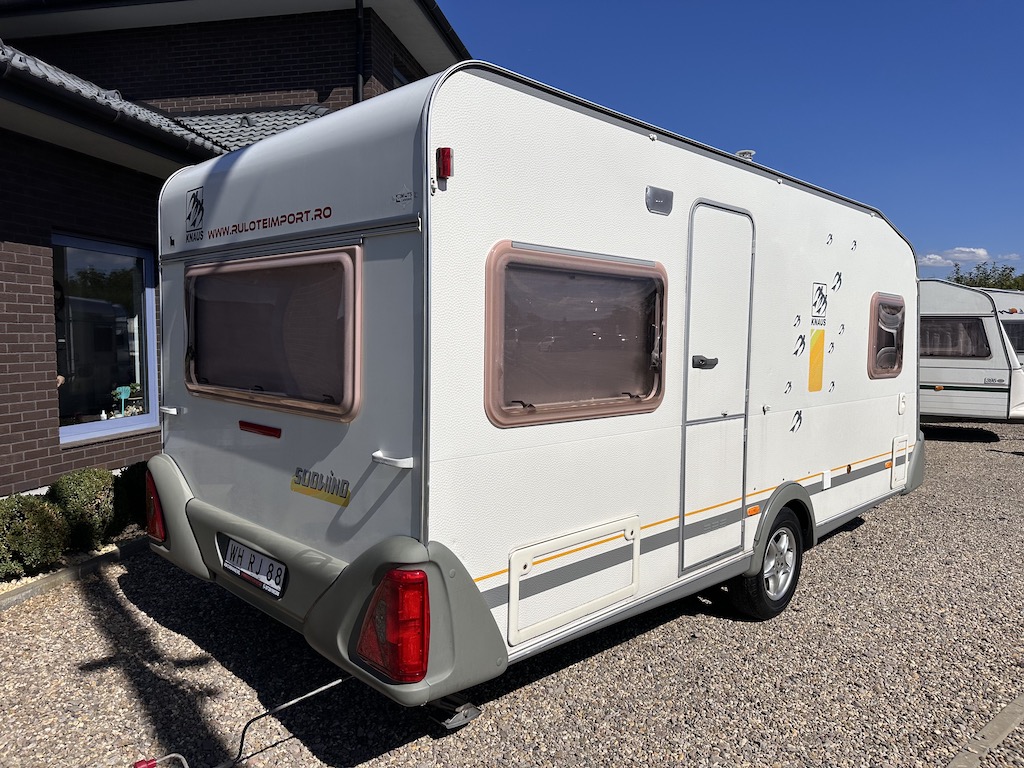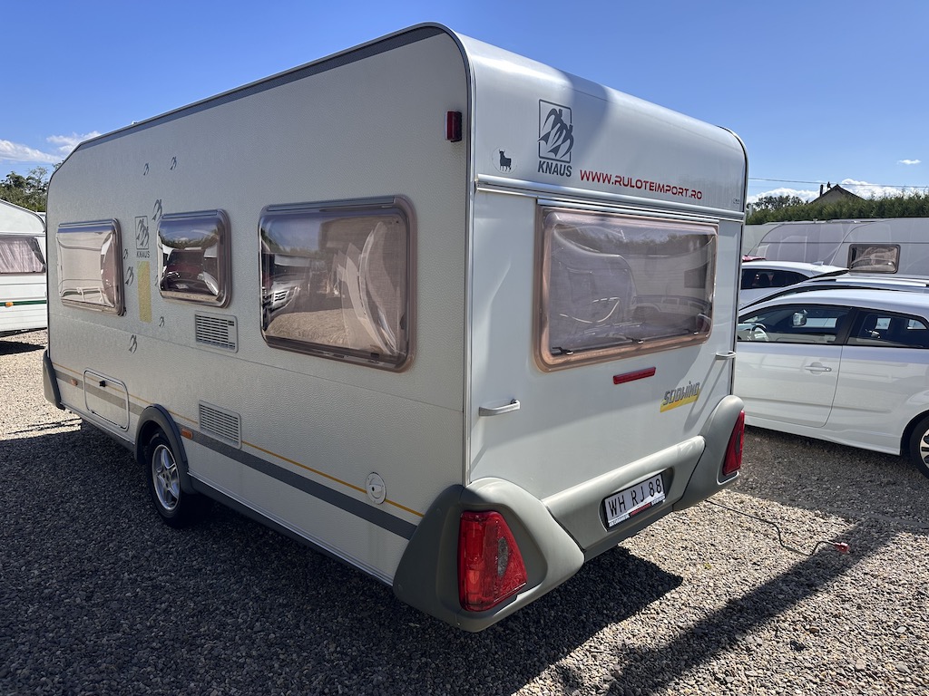 Rulota second-hand Knaus Sport 450 TUF Sudwind, an de fabricatie 2003, ce are in dotare o bucatarie cu chiuveta inox si robinet, aragaz, frigider functional pe gaz 12V/220V, sistem de incalzire Trumatic, incalzire in podea, trape de aerisire, baie cu wc fix ecologic, cu golire exteriora, cadita de dus. Rulota este compartimentata dubla, in fata se afla un pat patrimonial, iar in spate un coltar cu o masa, din care se face un pat de 1.40m x 2 m. Toate geamurile se deschid si au plase antitantari, jaluzele atermice, perdele si draperii. Rulota are un cort mare, carlig antibalance, butelie gpl… Rulota se afla intr-o stare buna, fara mirosuri si infiltratii!!!