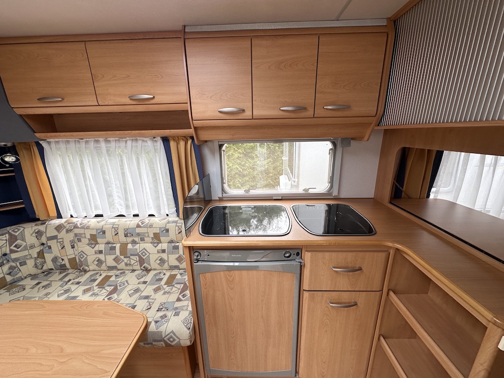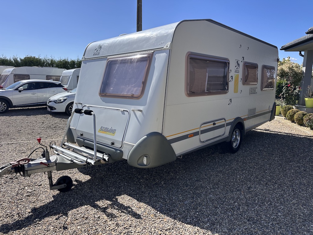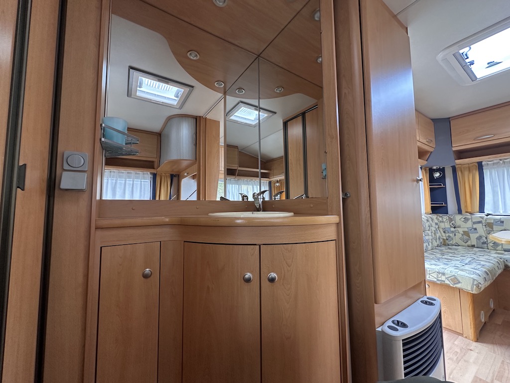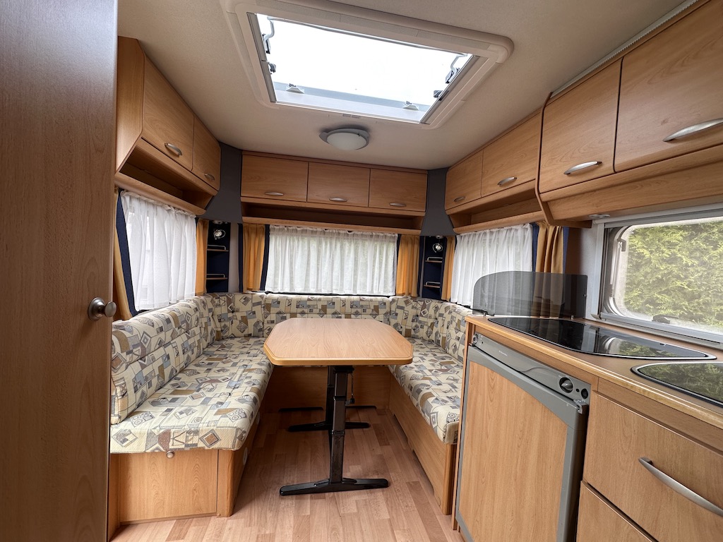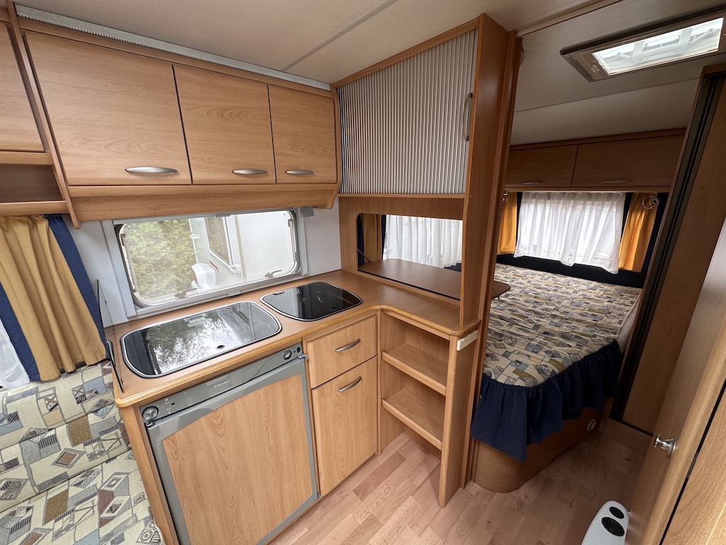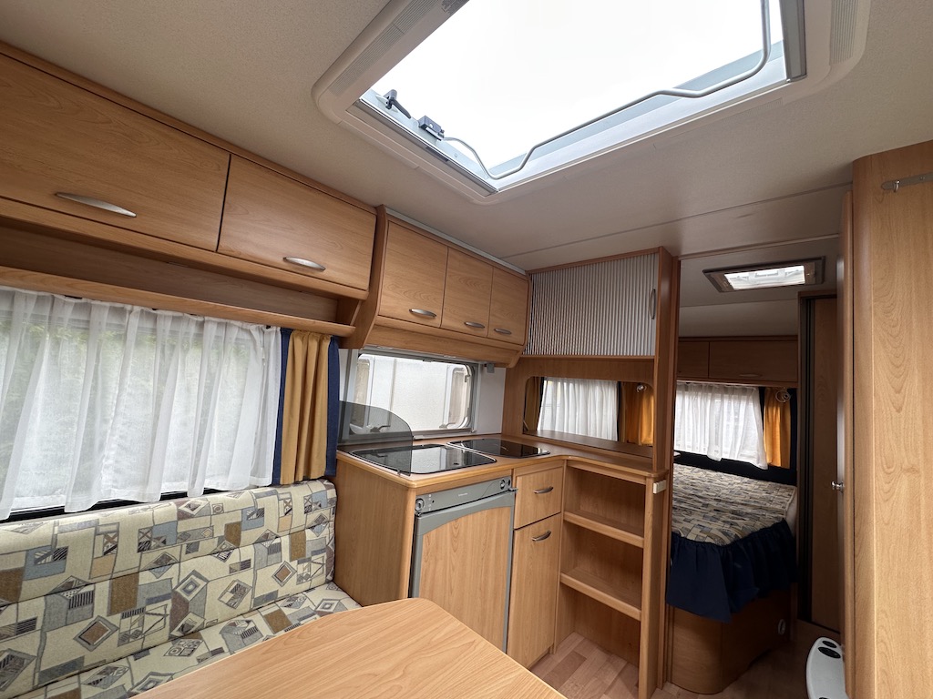 Rulota second-hand Knaus Sport 450 TUF Sudwind, an de fabricatie 2003, ce are in dotare o bucatarie cu chiuveta inox si robinet, aragaz, frigider functional pe gaz 12V/220V, sistem de incalzire Trumatic, incalzire in podea, trape de aerisire, baie cu wc fix ecologic, cu golire exteriora, cadita de dus. Rulota este compartimentata dubla, in fata se afla un pat patrimonial, iar in spate un coltar cu o masa, din care se face un pat de 1.40m x 2 m. Toate geamurile se deschid si au plase antitantari, jaluzele atermice, perdele si draperii. Rulota are un cort mare, carlig antibalance, butelie gpl… Rulota se afla intr-o stare buna, fara mirosuri si infiltratii!!!